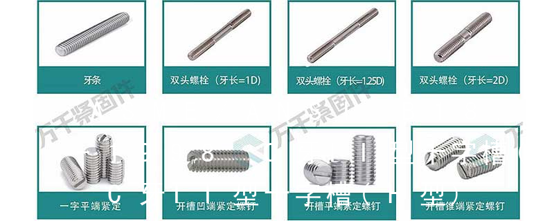 1)開槽普通螺釘多用于較小零件的連接。它有盤頭螺釘、圓柱頭螺釘、半沉頭螺釘和沉頭螺釘。盤頭螺釘和圓柱頭螺釘的釘頭強度較高,瑁在普通的部件連接上;半沉頭螺釘的頭部呈弧形,安裝后它的頂端略外露,且美觀光滑,一般